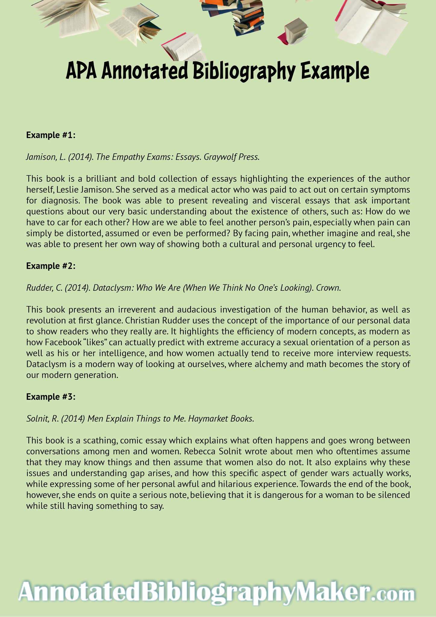 Apa example of indicative annotated bibliography: example from thomas tate's handout Though Schechter reorganizes the material in an interesting format, basically.